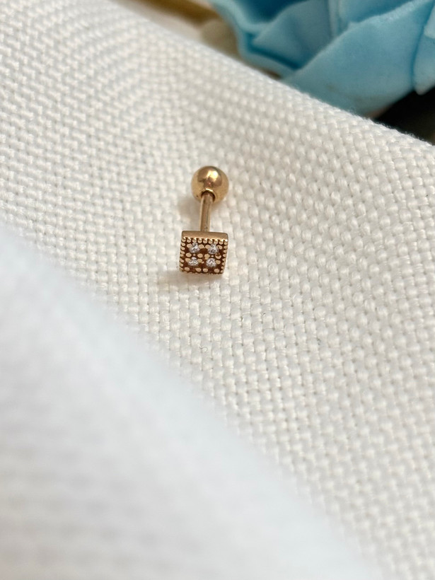 پیرسینگ گوش مربع نگیندار